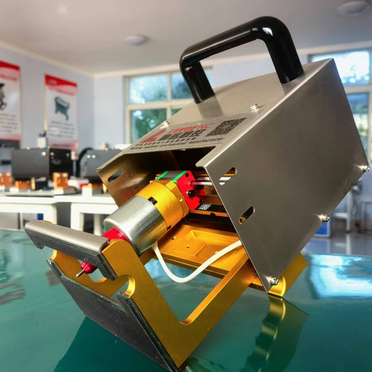 Namensko ploščo iz nerjavečega jekla kovinska optična vlakna laserska graviranje in kodiranjeelektrični ročni označevalni stroj za kovino Baterijski označevalni stroj je nov model podjetja Luyue CNC Equipment Co. Ltd. Ne potrebujete električnega ali zračnega vira, nobenih vodov. Popolnoma brezžični stroj za graviranje kovin, ena baterija lahko deluje 4-6 ur neprekinjeno. To je idealen model za označevanje na prostem. Že več kot 10 let smo specializirani za stroje za označevanje. Naši izdelki imajo ugodno ceno in stalno kakovost. Iščemo distributerje po vsem svetu.